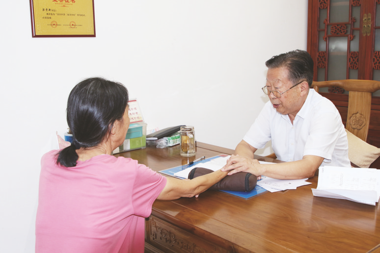 人物名片——孙成顺 在派林大药房汉水名城店中医馆,80多岁高龄的名老中医孙成顺正在为一位刚出院不久的患者诊脉,然后又看看患者的舌苔和眼睛,最后得出经常头晕、失眠多梦、饮食不佳的诊断结论。孙成顺的话让患者颇为惊奇,因为孙医生的结论完全正确,毫无差池。孙成顺,1942年出生于中医世家,从小耳濡目染、好读医书,对于中医的喜爱早已深入骨髓。在略钢医院工作期间,充分发挥所学,勤恳奉献直至退休。从事中医临床工作50多年,孙成顺以治病救人为己任,一心将祖上几代人付出心血的中医医术发扬光大,擅长心脑血管病、肺病、胃病、肝病、肾病及疑难杂症的治疗,尤其是用中草药、针灸、火罐、推拿、点穴、穴位敷药治疗疑难杂症和常见病方面,经验丰富。几十年如一日,孙成顺用自己精湛的医术和低调谦和的人格魅力赢得了患者、同事和领导的爱戴。
