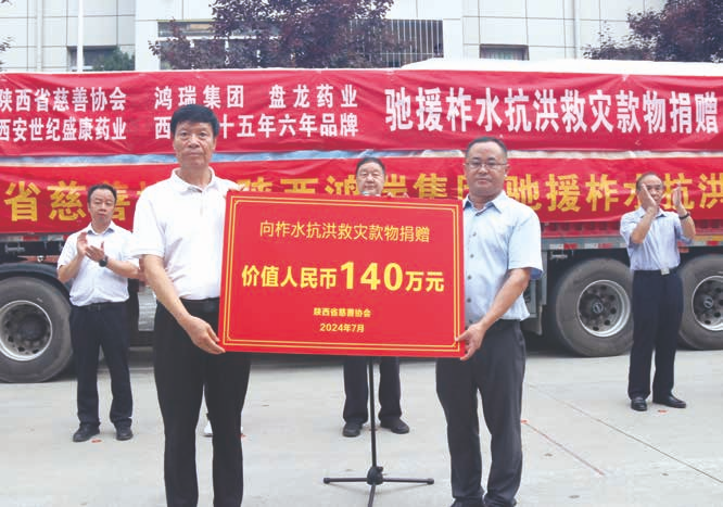 吴前进表示,危难时刻见真情,多年来,陕西鸿瑞投资集团有限公司等爱心企业在自身发展壮大的同时,始终秉持初心,积极履行社会责任,大力支持慈善公益事业,为我省慈善事业发展作出了突出贡献。此次商洛柞水、山阳、洛南等地洪涝灾害发生后,爱心企业迅速响应、慷慨解囊、无私奉献,全力救助受灾群众,既是对我省慈善事业的有力支持,更是对受灾群众的雪中送炭,体现了习近平总书记倡导的“富而有责、富而有义、富而有爱”,彰显了企业兼济天下的慈善担当和家国情怀,值得全社会尊重和褒扬。希望柞水县秉持“敬重善主、敬畏善款”的原则,切实管好用好这批善款善物,及时发放到受灾群众的手中,实现救助效用的最大化。相信在商洛市委、市政府和县委、县政府的正确领导下,在社会各界的大力支持下,在全县干部群众的共同努力下,我们万众一心、众志成城、和衷共济、共克时艰,定能赢得抗洪救灾与灾后重建的全面胜利。