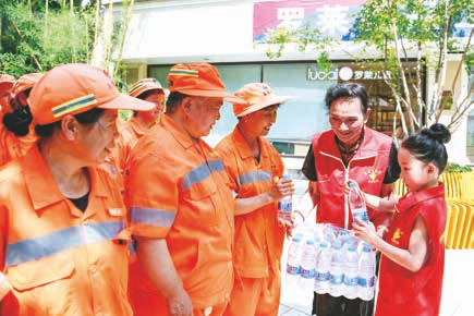 时值三伏酷暑,8月1日,省慈善协会爱心大姐志愿者服务队在西安市雁塔区开展“夏日送清凉”公益活动,为近百名环卫工人送上消暑降温物品。