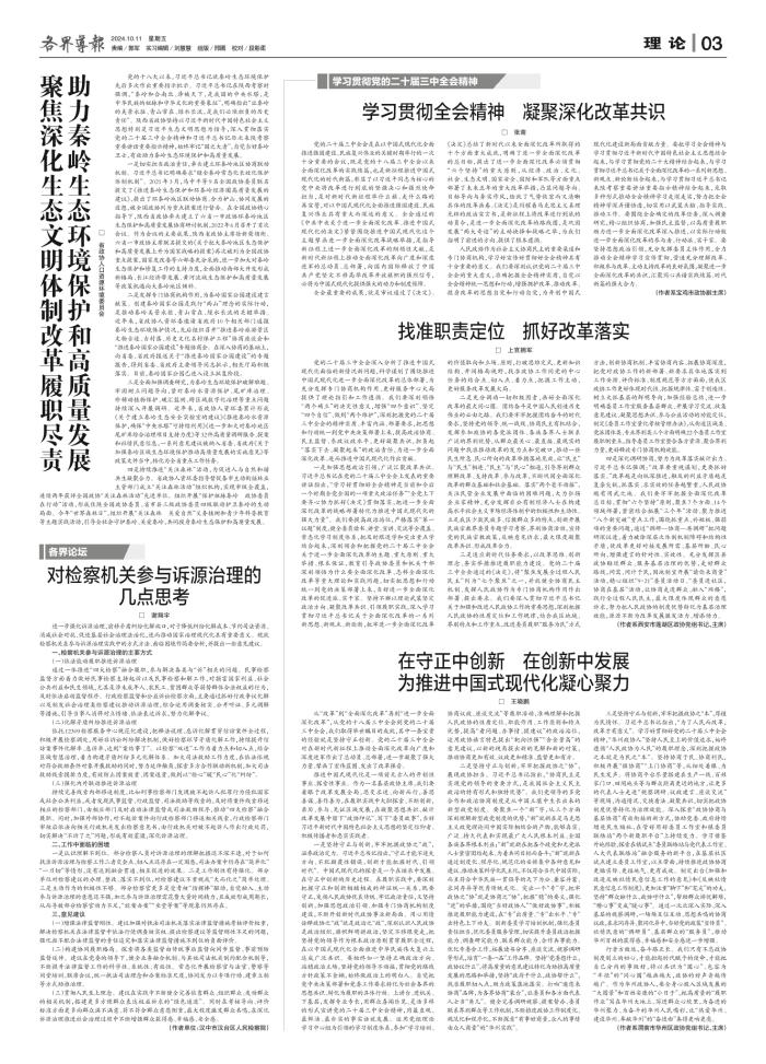 聚焦深化生态文明体制改革履职尽责助力秦岭生态环境保护和高质量发展