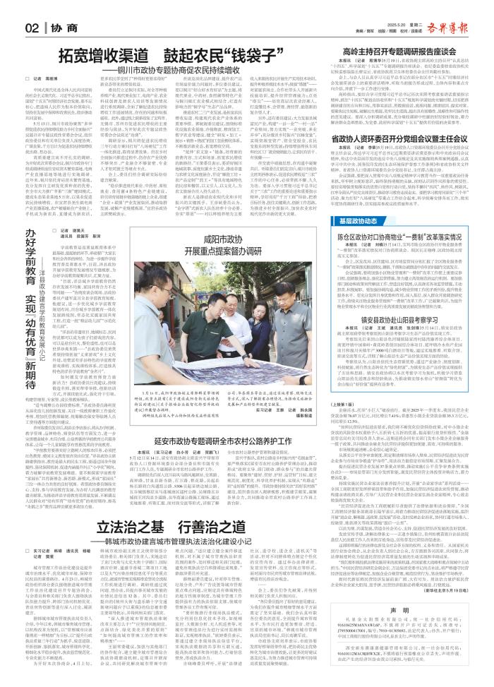 延安市政协专题调研全市农村公路养护工作
