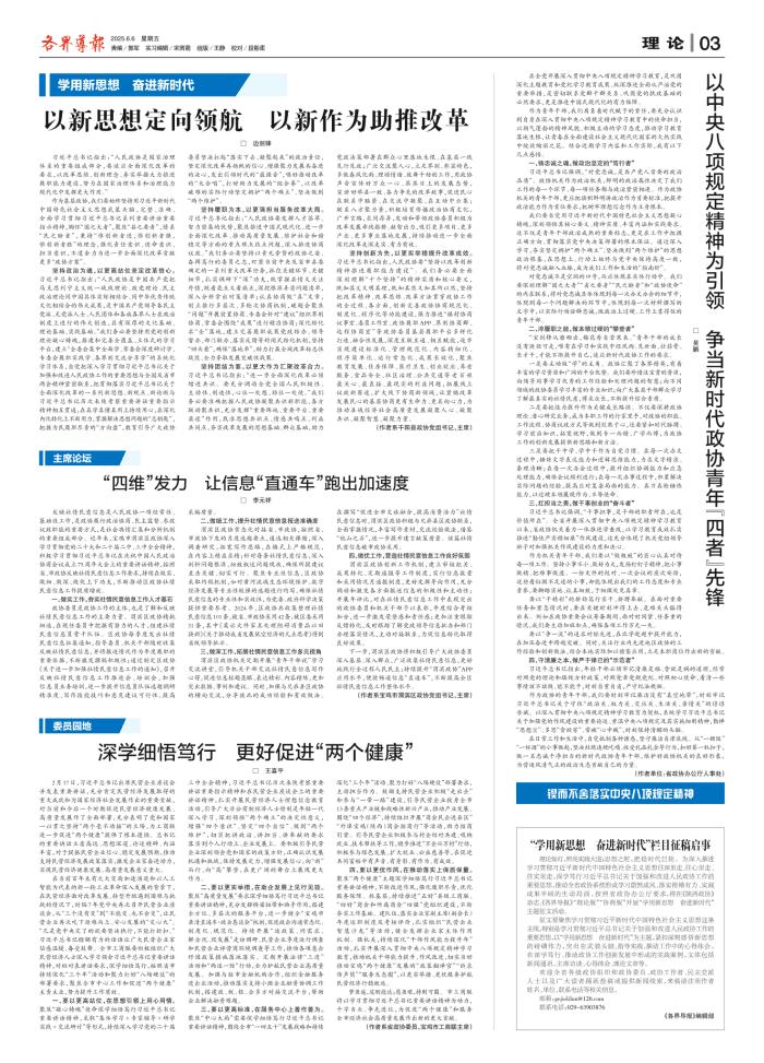 以中央八项规定精神为引领 争当新时代政协青年“四者”先锋