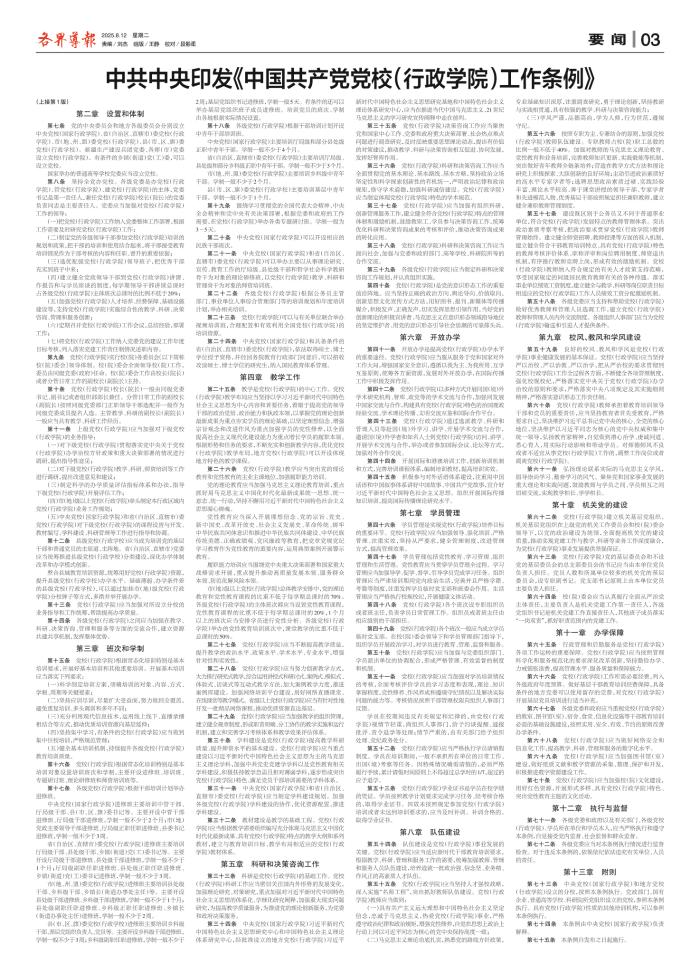 中共中央印发《中国共产党党校(行政学院)工作条例》