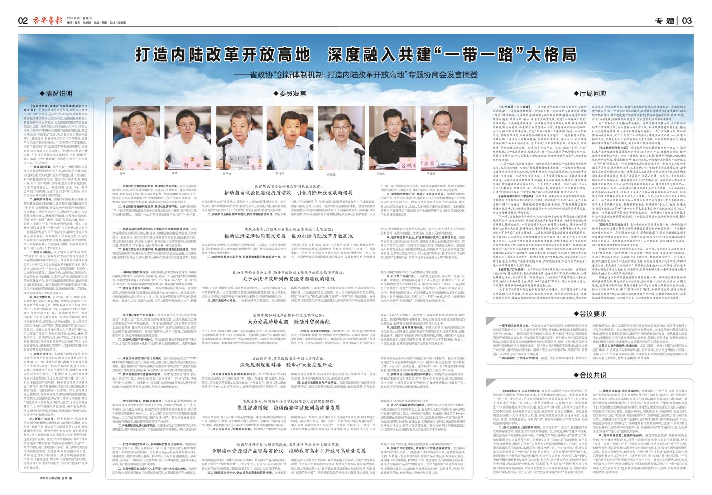 省政协召开“创新体制机制,打造内陆改革开放高地”专题协商会