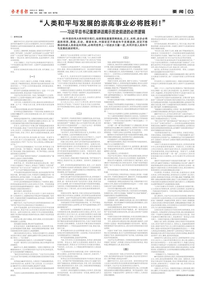 “人类和平与发展的崇高事业必将胜利!”