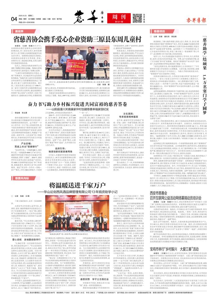 省慈善协会携手爱心企业资助三原县东周儿童村