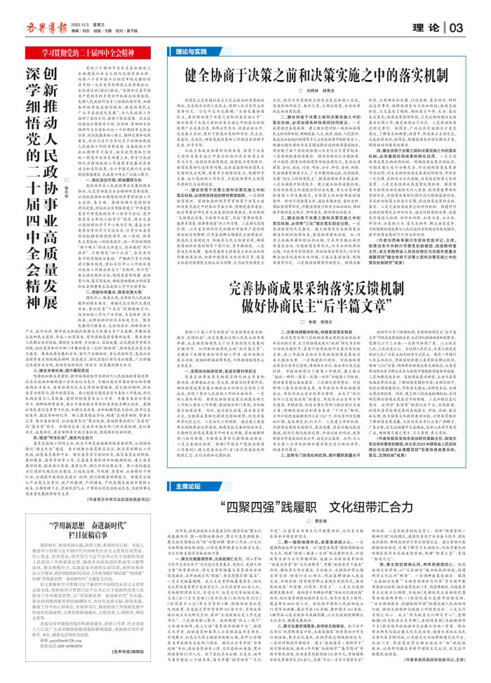 完善协商成果采纳落实反馈机制 做好协商民主“后半篇文章”