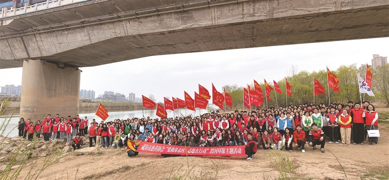 3月21日,咸阳市慈善协会公益志愿者分会联合秦都区志愿服务联合会在咸阳市古渡廊桥南岸开展“爱我母亲河·志愿在行动”主题活动。 咸阳市慈善协会供图