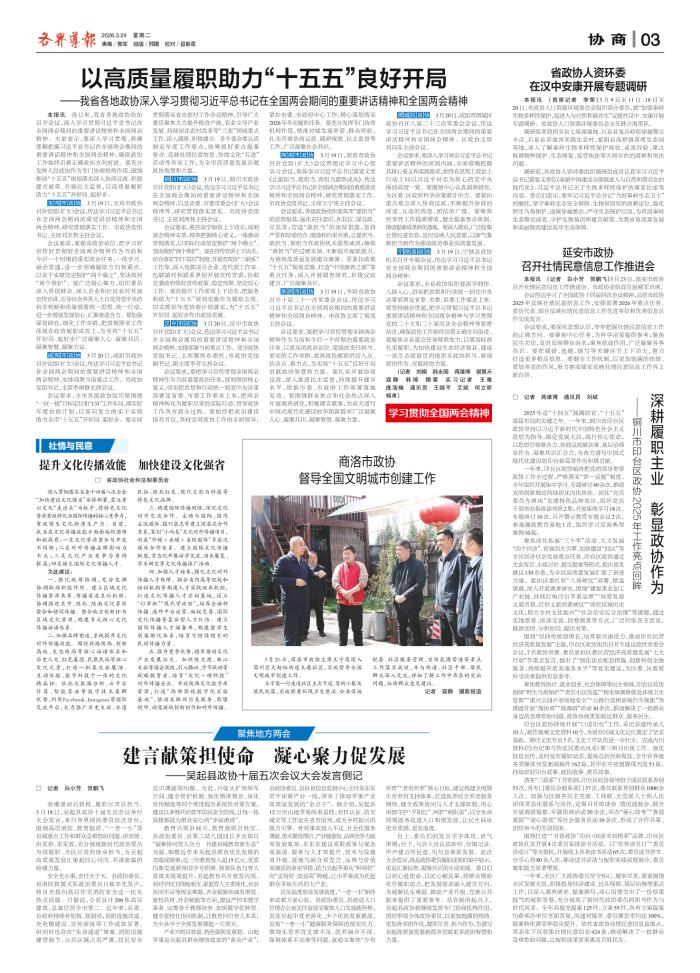 深耕履职主业 彰显政协作为
