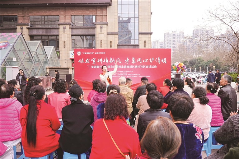 3月25日,“银发宣讲传新风 志愿同心护清明”敬老助老志愿服务活动在西安高新区丈八街道唐沣社区举行。