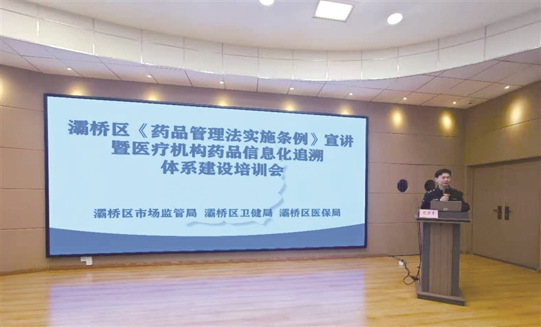 本报讯 为深入落实药品全链条监管要求,筑牢群众用药安全防线,4月8日,西安市灞桥区召开《药品管理法实施条例》宣讲暨医疗机构药品信息化追溯体系建设培训会。区市场监管局、区卫健局、区医保局分管领导,全区二级以下医疗机构追溯体系建设负责人、相关业务科所业务负责人、监管干部共300余人参加培训。